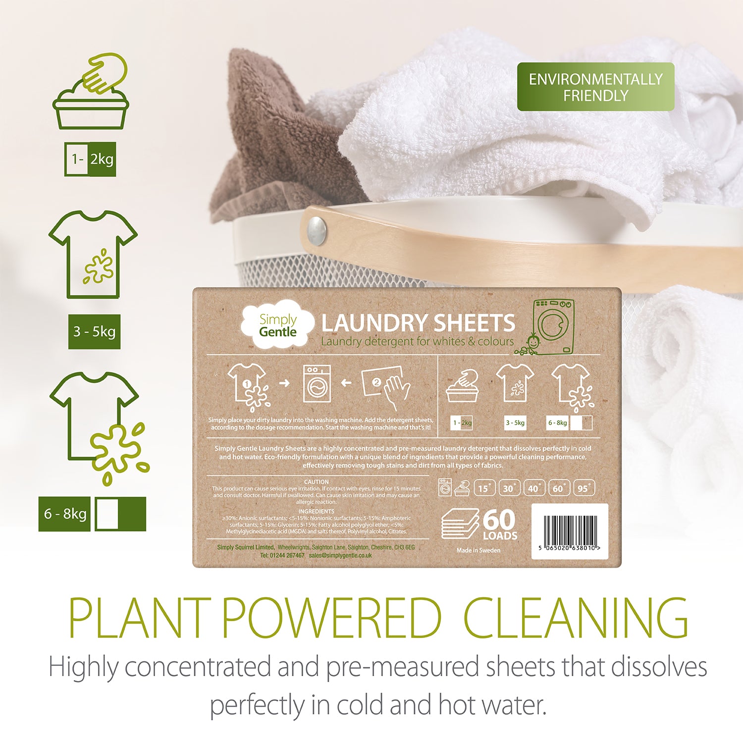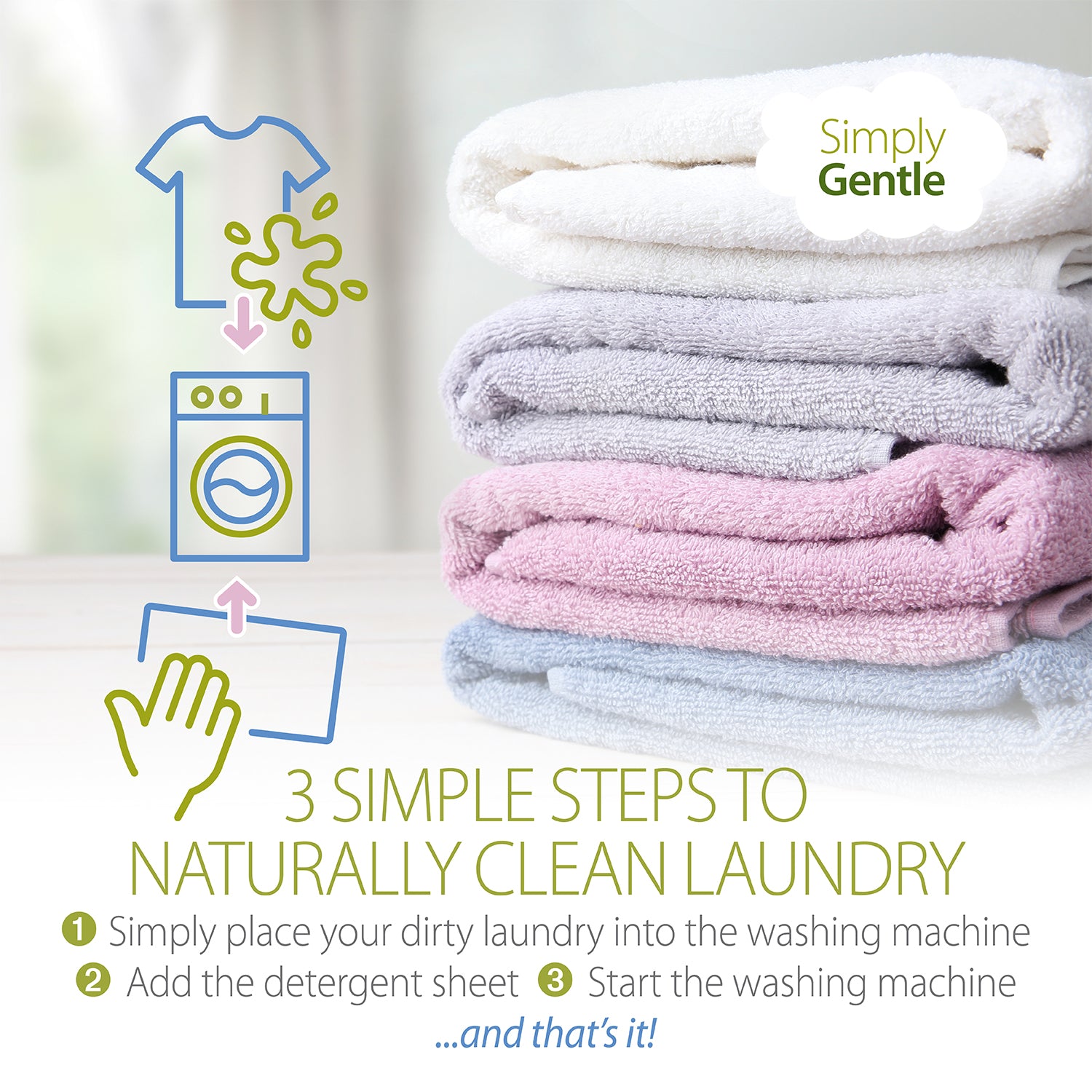 Environmentally Friendly: Simply Gentle Laundry Sheets are a highly concentrated and pre measured laundry detergent that dissolves perfectly in cold and hot water, eco-friendly formulation with a unique blend of ingredients that provide powerful cleaning performance, effectively removing tough stains and dirt from all types of fabrics.