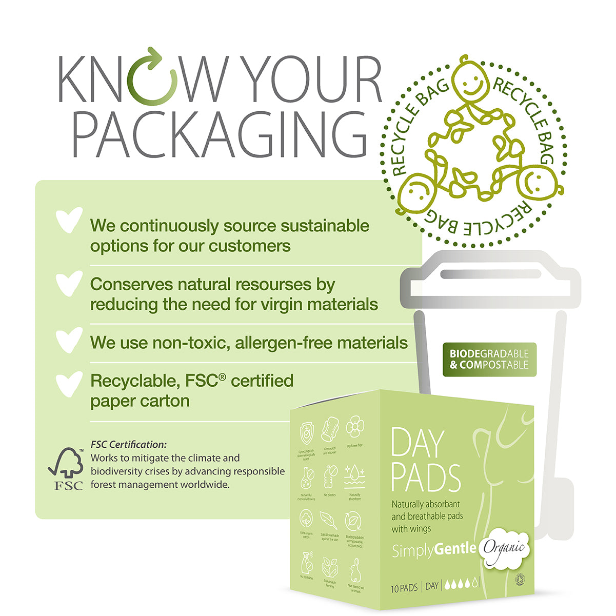 Soft, Sustainable & secure, Simply Gentle Feminine Hygiene Pads & liners made from 100% certified organic cotton ...safe for your body & mind