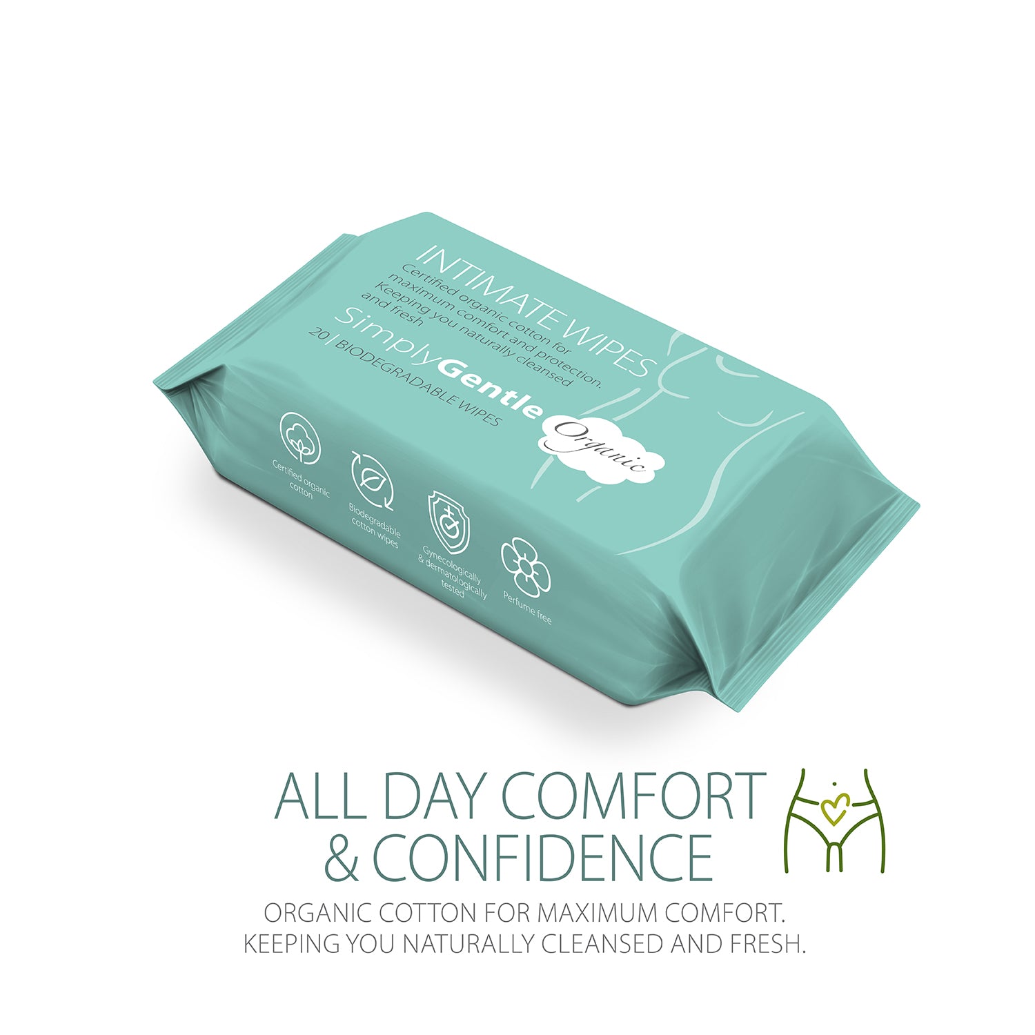 Simply Gentle Intimate Wipes - Made from Organic Cotton 100 % & 99% Pure Water.