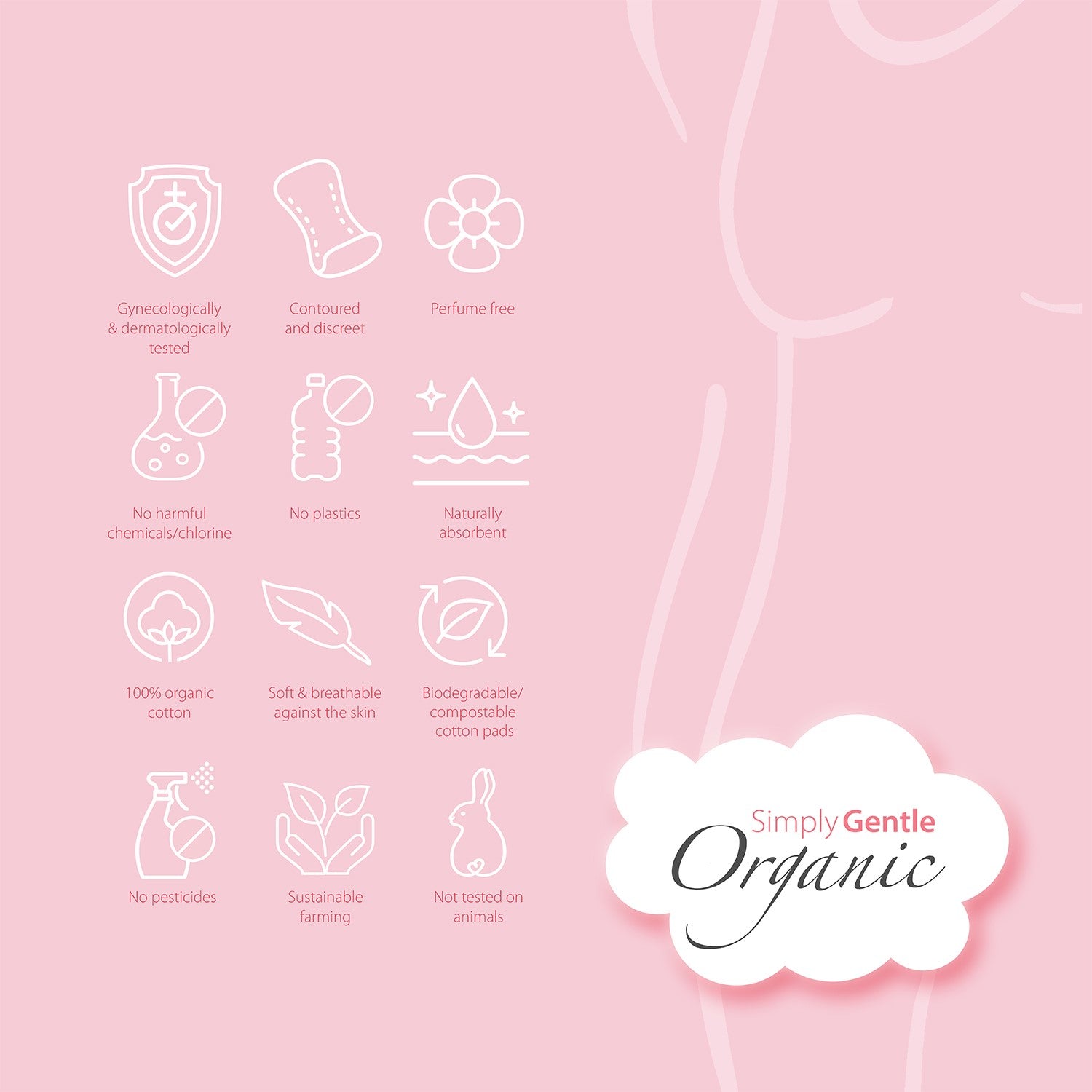 Soft, Sustainable & secure, Simply Gentle Feminine Hygiene Pads & liners made from 100% certified Organic cotton ...safe for your body & mind