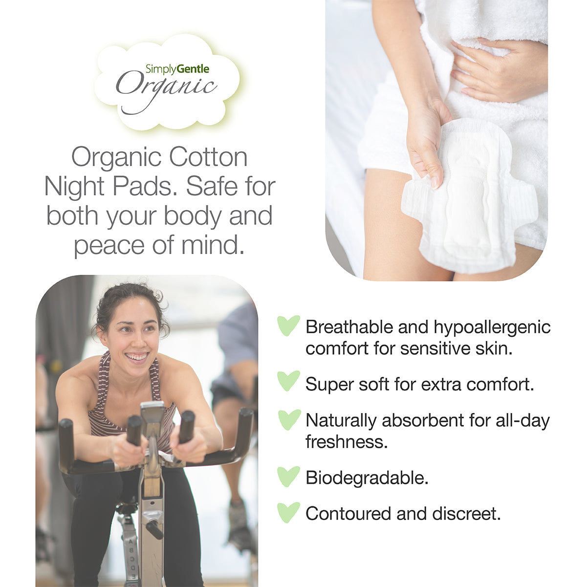 Simply Gentle Night Pads, 100% Organic cotton, naturally absorbent Sanitary Pads with wings.